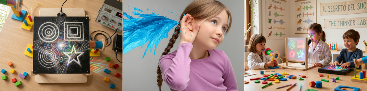 I bambini sperimenteranno strumenti speciali capaci di mostrare il movimento invisibile del suono, osservando effetti sorprendenti e percependo le vibrazioni con il corpo e con le mani.