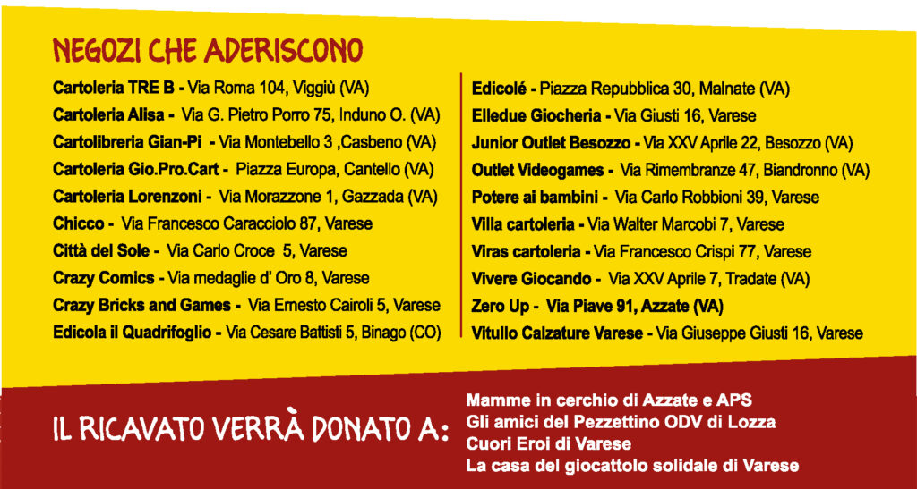 Entra nei negozi che partecipano all’iniziativa, acquista un regalo e lascialo “in sospeso”: i doni raccolti andranno alle Associazioni di Varese che aiutano famiglie e bambini in difficoltà.