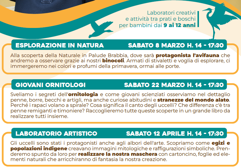 Un’intera giornata immersi nella natura, tra esplorazioni, scoperte e creatività, per osservare da vicino il risveglio della primavera e conoscere da vicino il meraviglioso mondo degli uccelli!